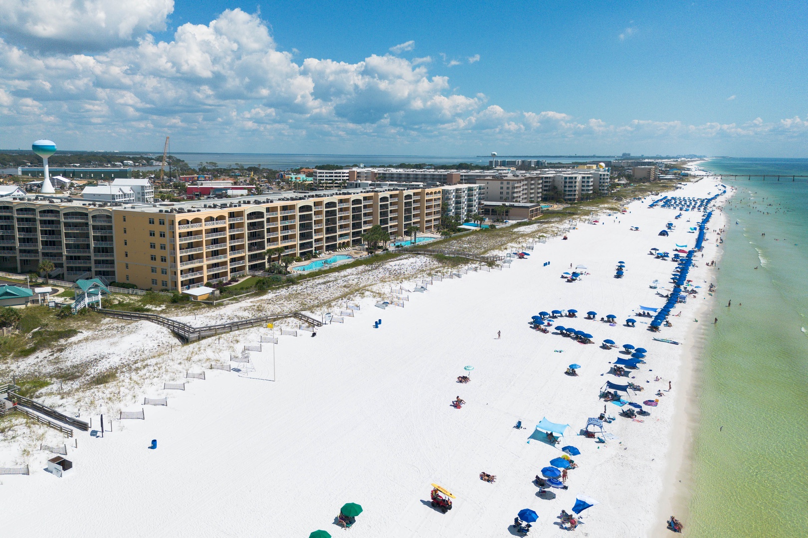 Azure is located on Okaloosa Island in Fort Walton Beach, FL. This Mediterranean inspired property allows guests to relax in style! Walk right out to the beach, swim in your choice of two swimming pools (Both with hot tubs), walk across the street and enjoy local restaurants, visit nearby attractions, or just sit and watch the sunsets. Your ticket to paradise!