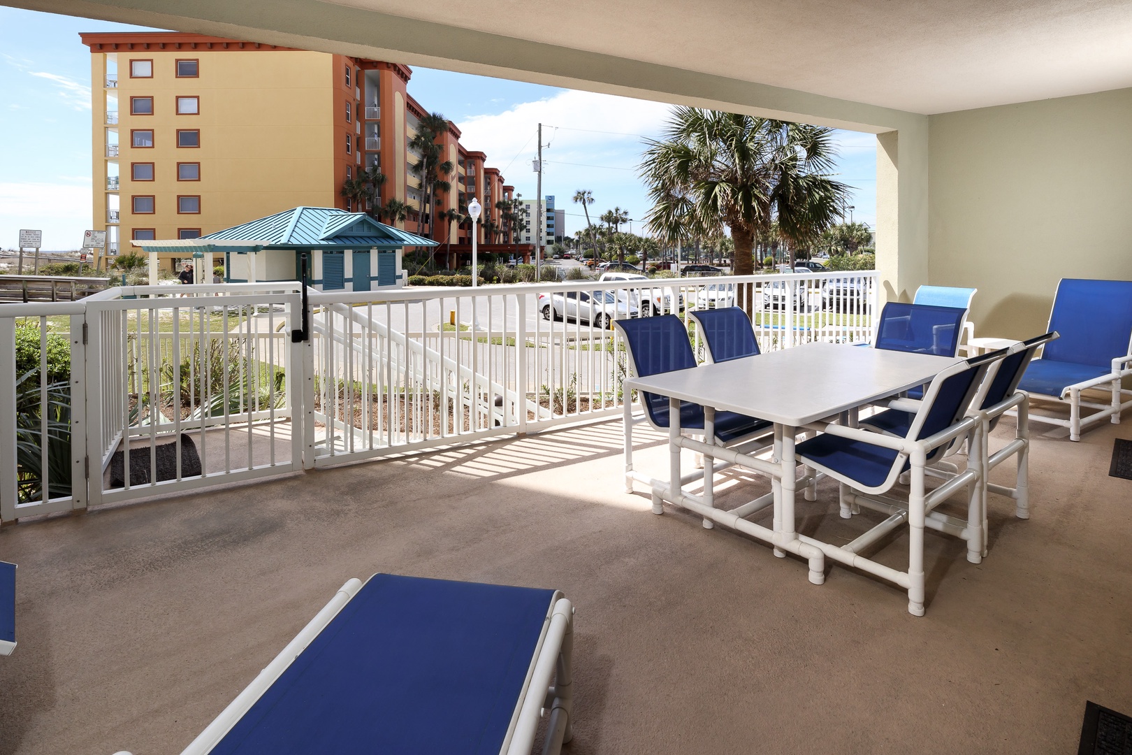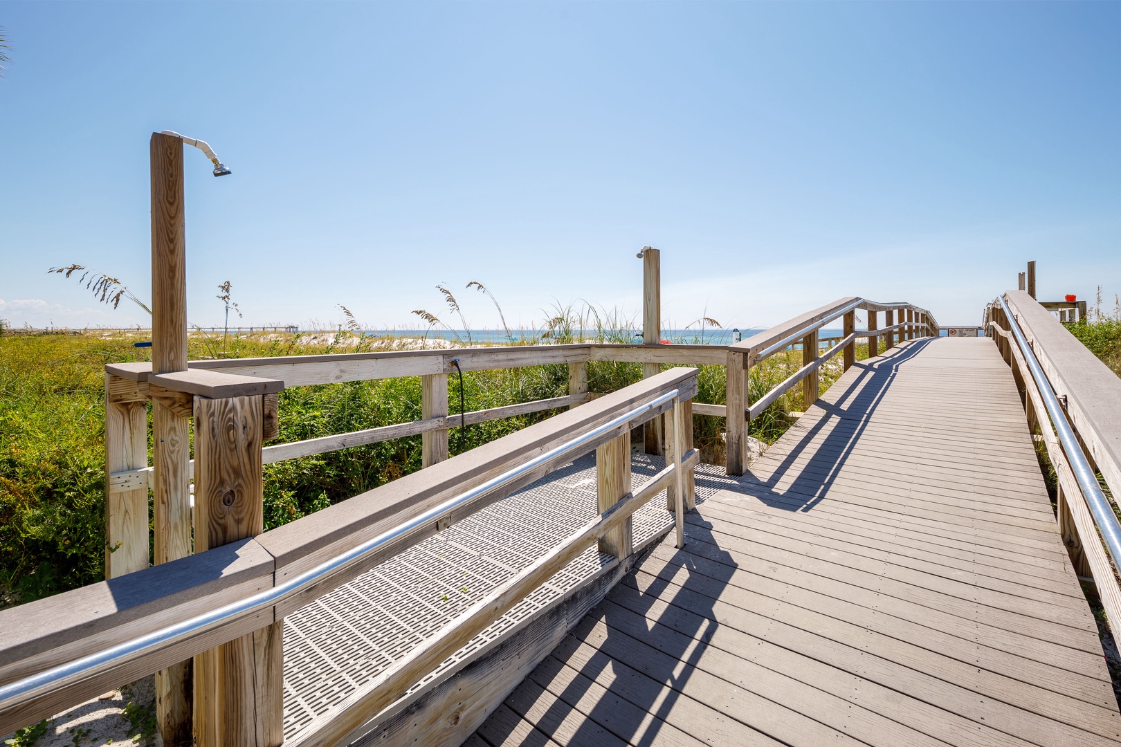 Azure 120 is a ground floor unit with partial gulf views, a large balcony, and private stairs leading to a grassy area and the beach. You do not have to walk through the condominium or go down elevators to go to the beach. Unique for a condo.