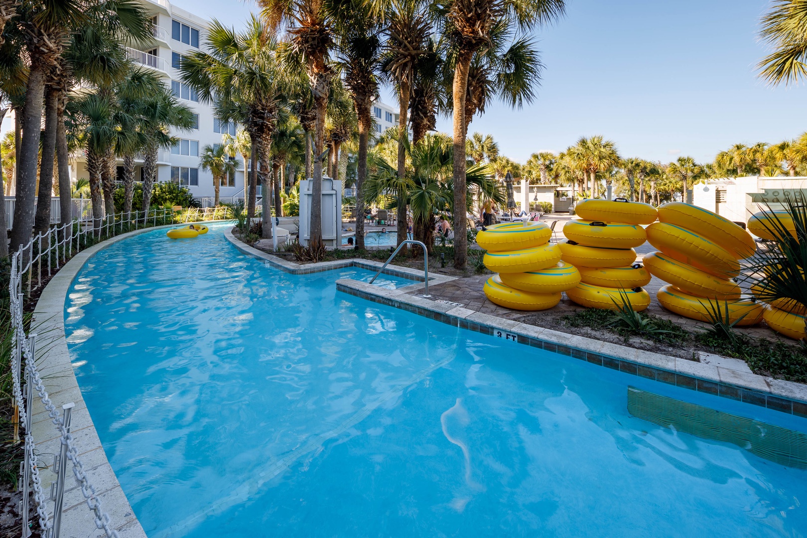 Destin West Resort is your ticket to paradise! Located in Fort Walton Beach, FL and nestled along the coastline of the Choctawhatchee Bay and The Gulf of Mexico this fun resort has something for the whole family! No other resort in the area offers private beach access, bay access, 10 swimming pools, a 700 ft. lazy river, marina, and children's activities. Enjoy the convenience of being within walking distance of the area’s best restaurants and attractions. Visit The Boardwalk, The Okaloosa Island Fishing Pier, The Gulfarium, and many local restaurants adjacent to the property.