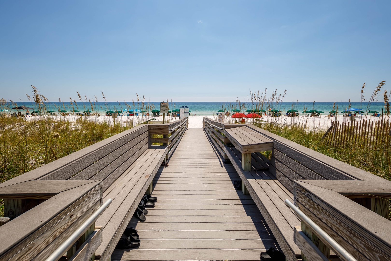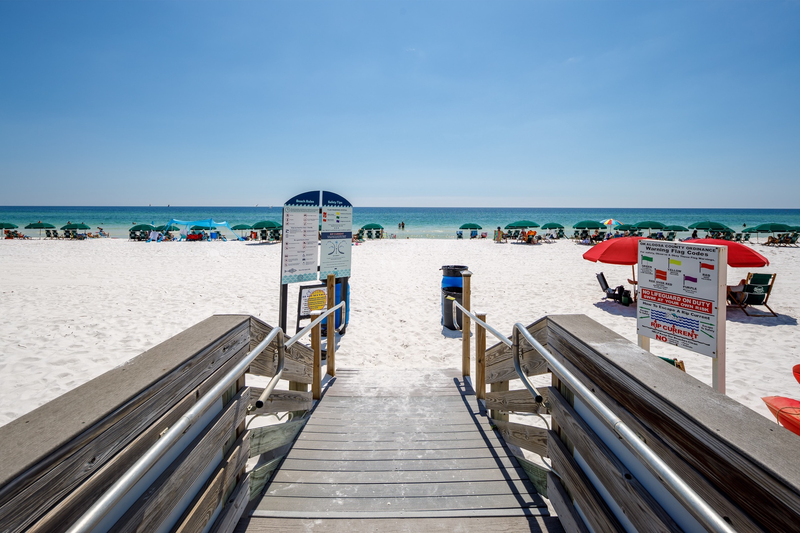 Water’s Edge 102 is perfect for beachgoers with children. This ground floor unit is a short thirty second walk around the corner to the pools and beach. Easy access from the parking garage. No balconies to worry about. Sit on the back porch and watch the kids play in the grass.